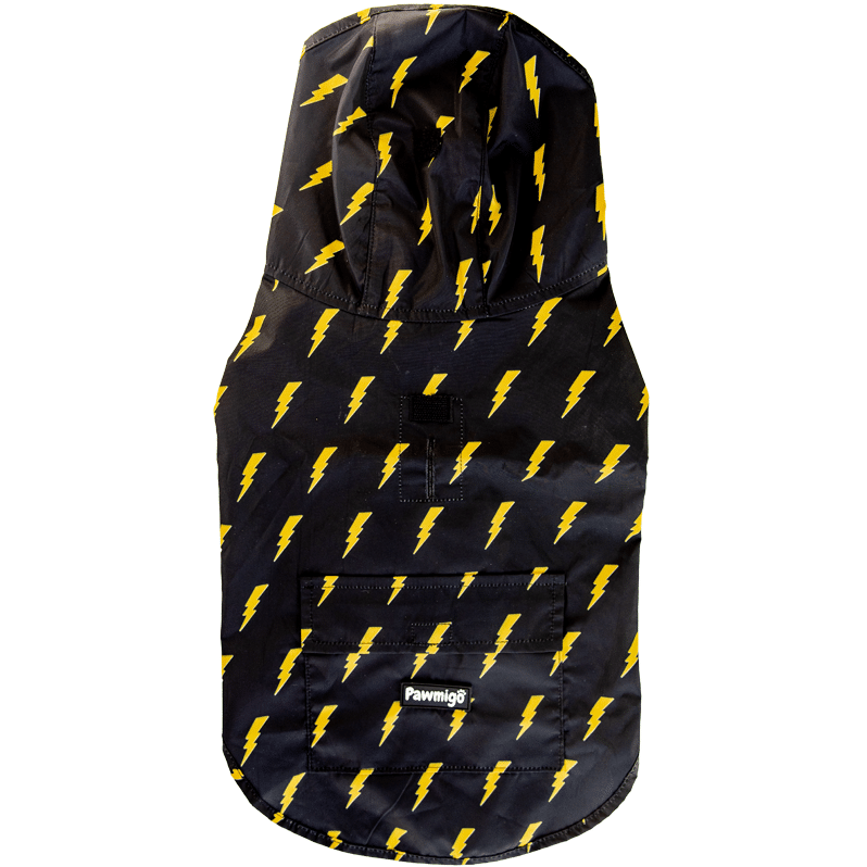 This electrifying black poncho, covered in bold yellow lightning bolts, is perfect for superhero pups who are ready to zap through rainy days and take on stormy weather in style.⚡